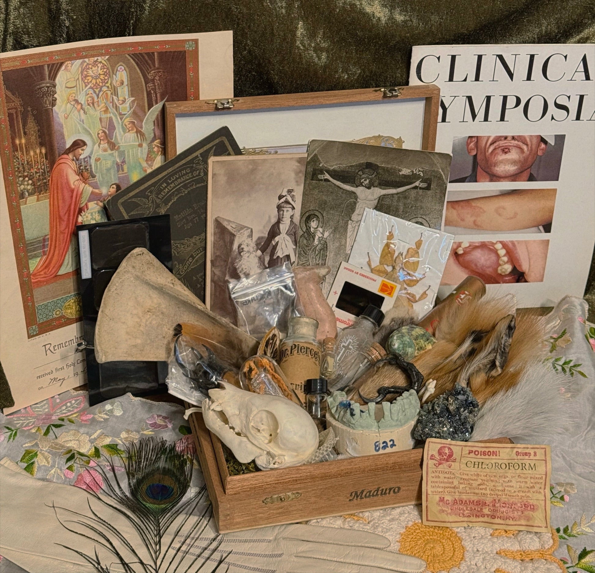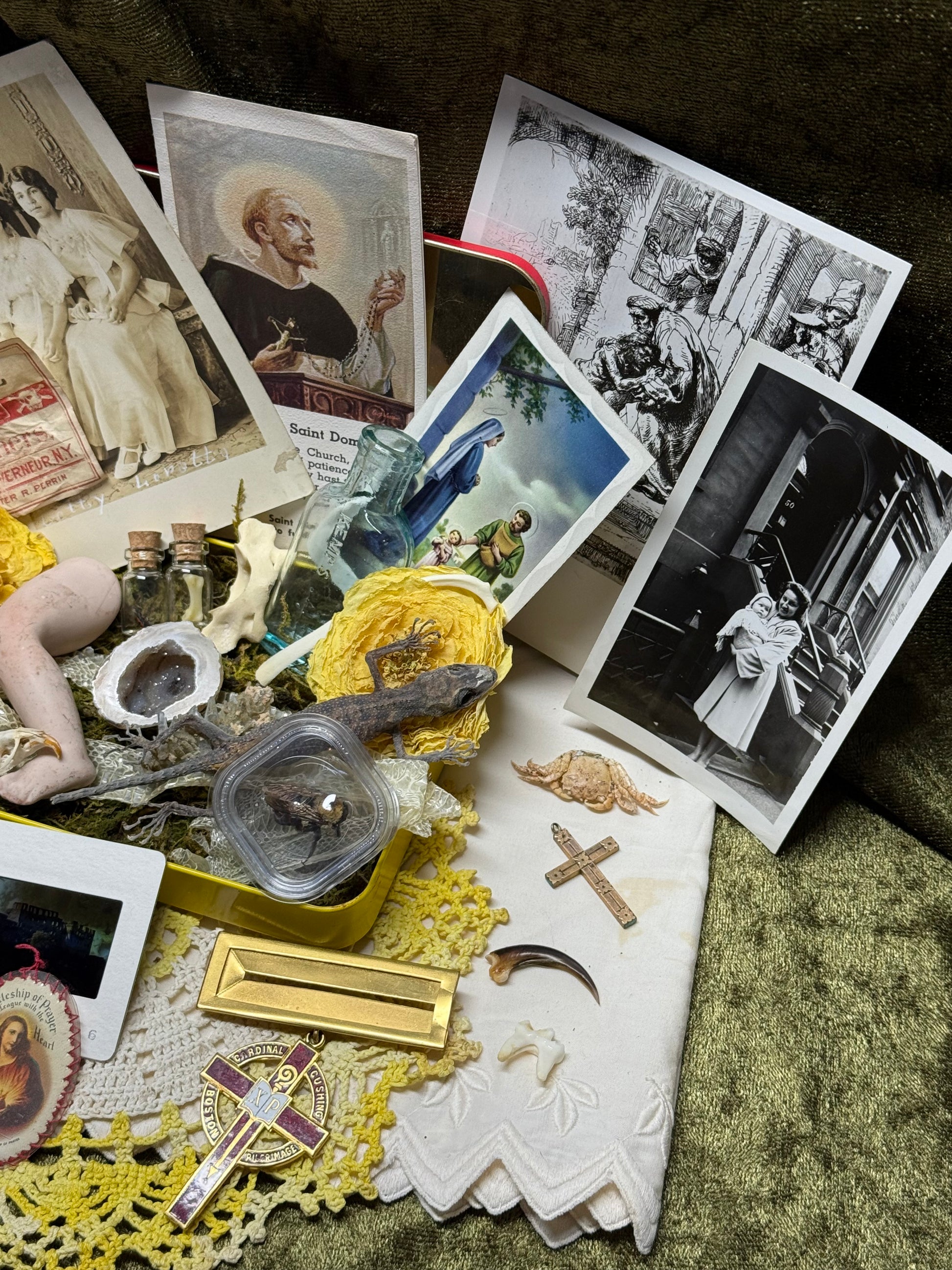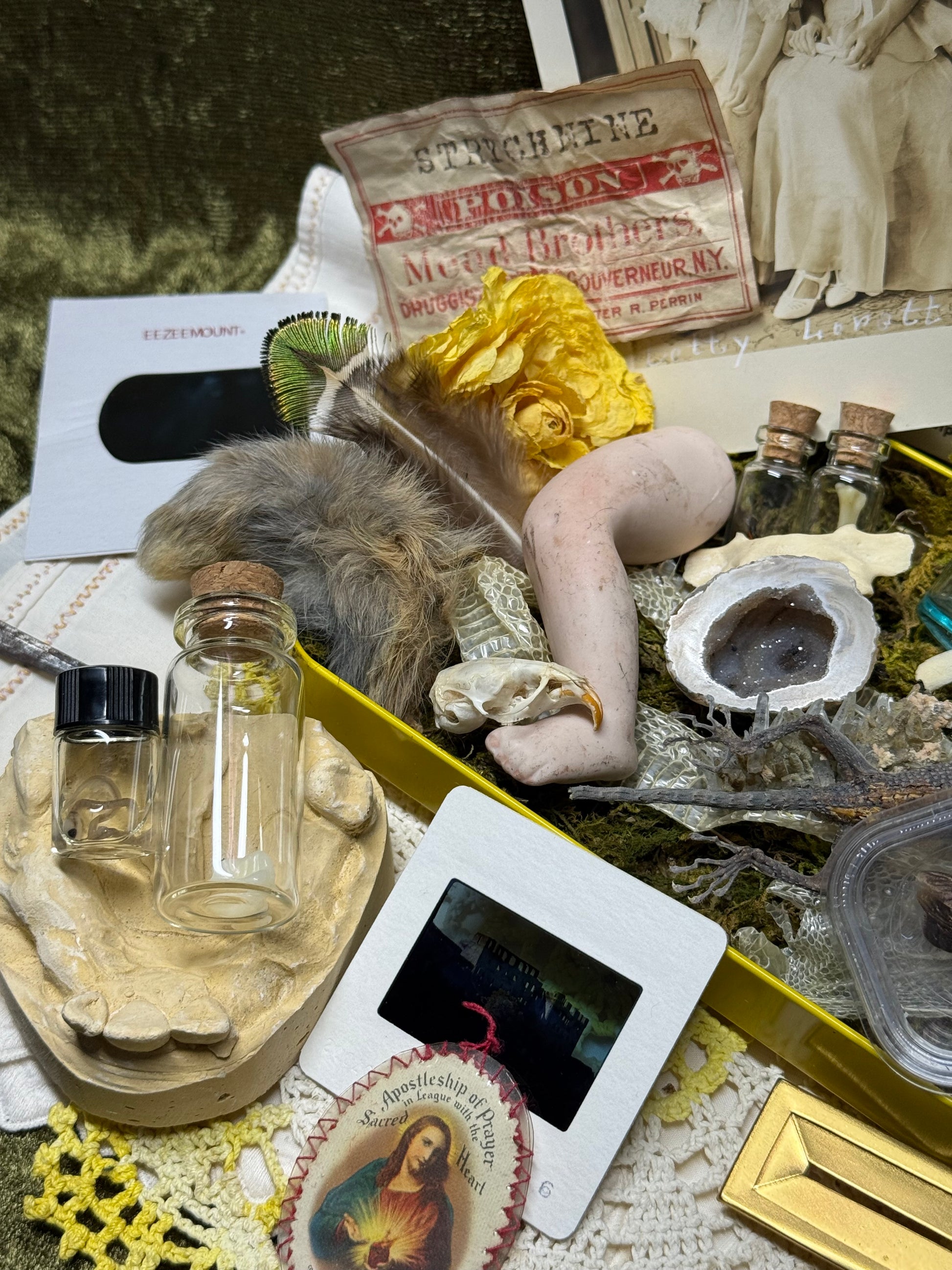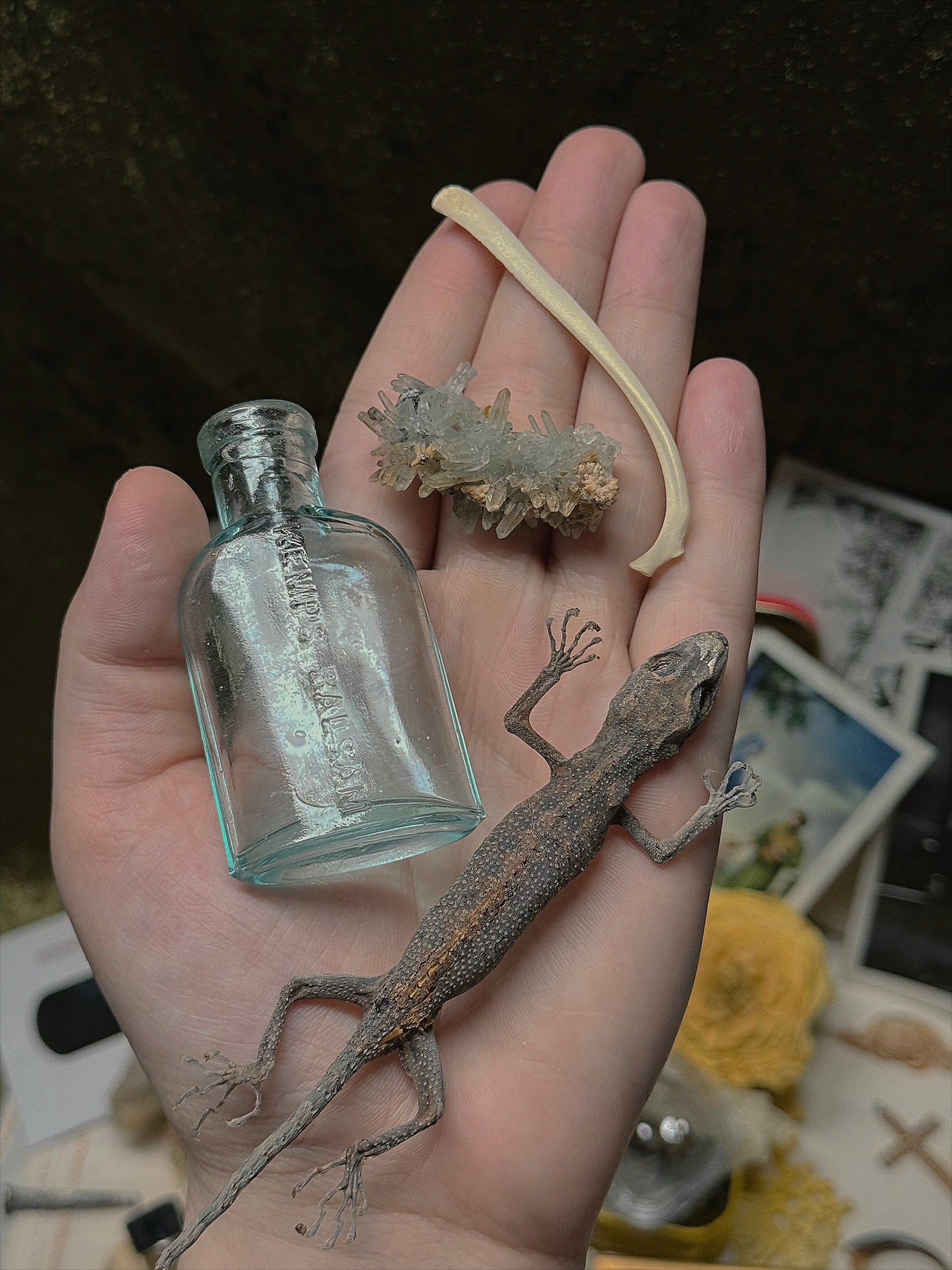 Just because it doesn’t fit in the box doesn’t mean it won’t come in your package!😉 I typically add more to your package than what will fit in each cigar box. I have multiples of most items in the example photos + more that aren’t pictured! I have a very large array of bones, bugs, skulls, vintage, antique, trinkets and treasures 🥹