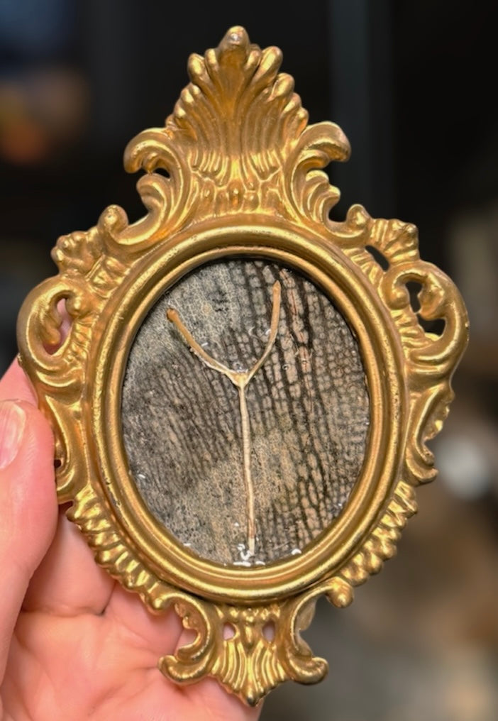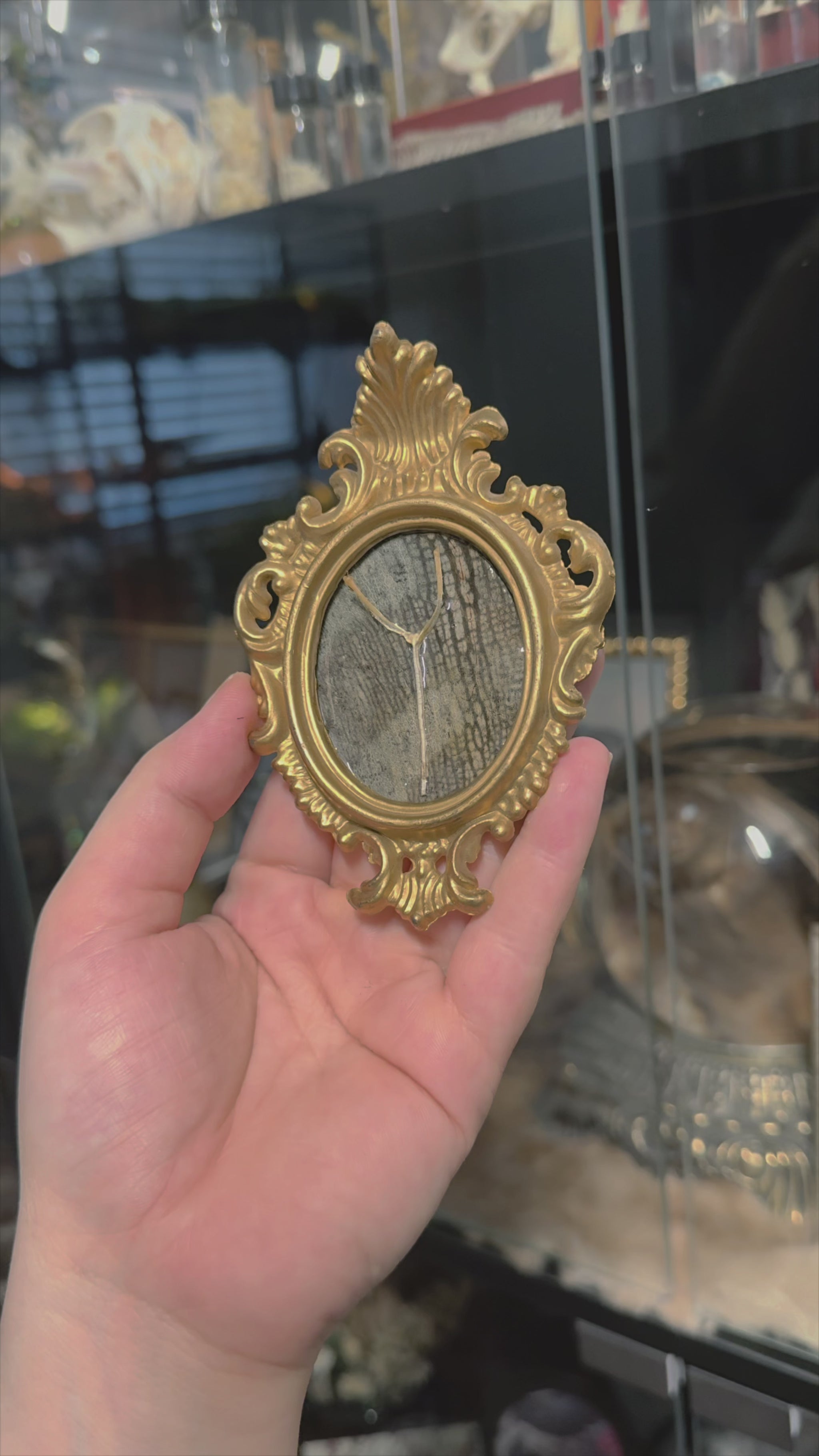 Real chameleon “tongue” bone & real preserved chameleon hide in a Vintage Frame