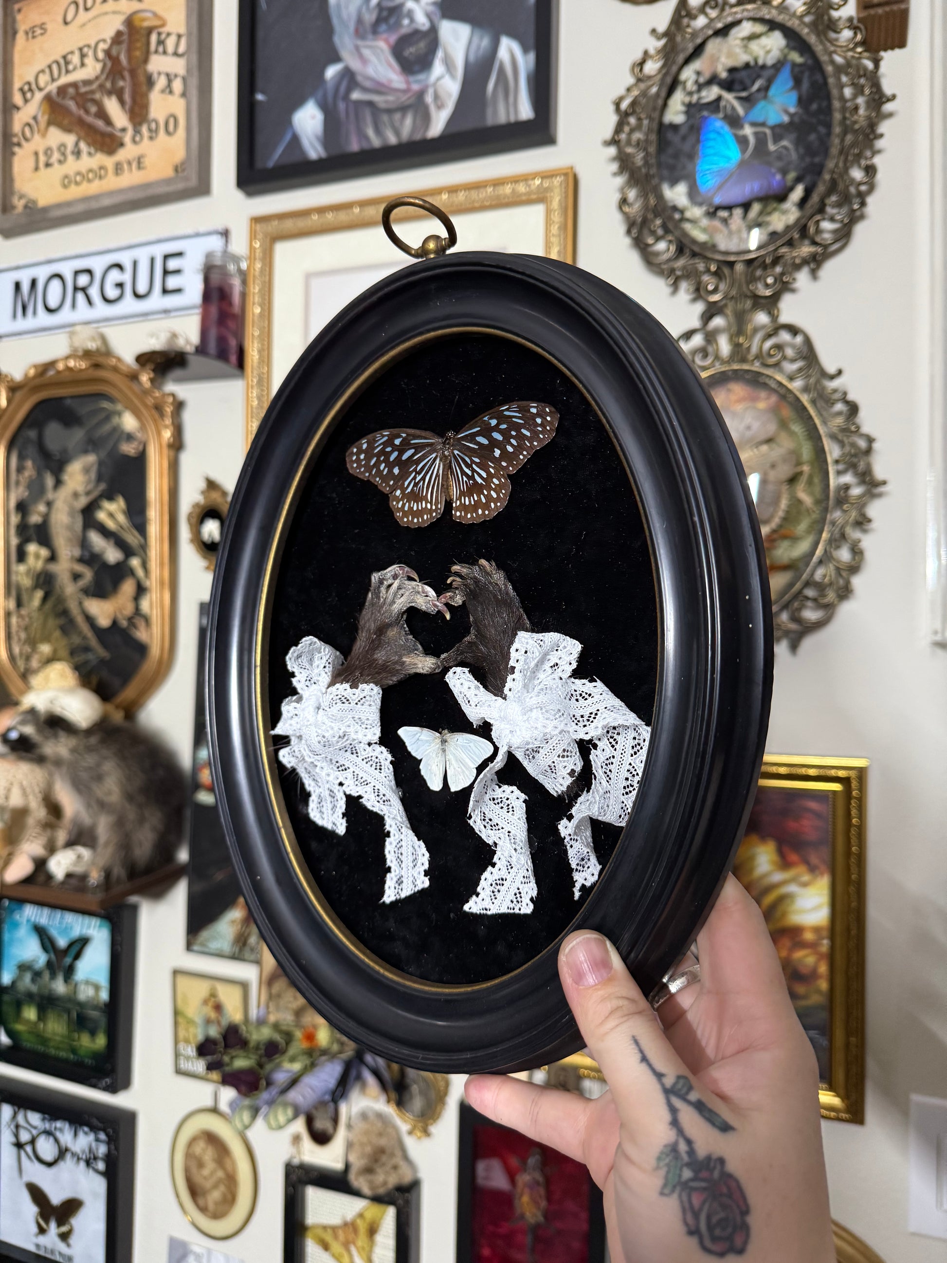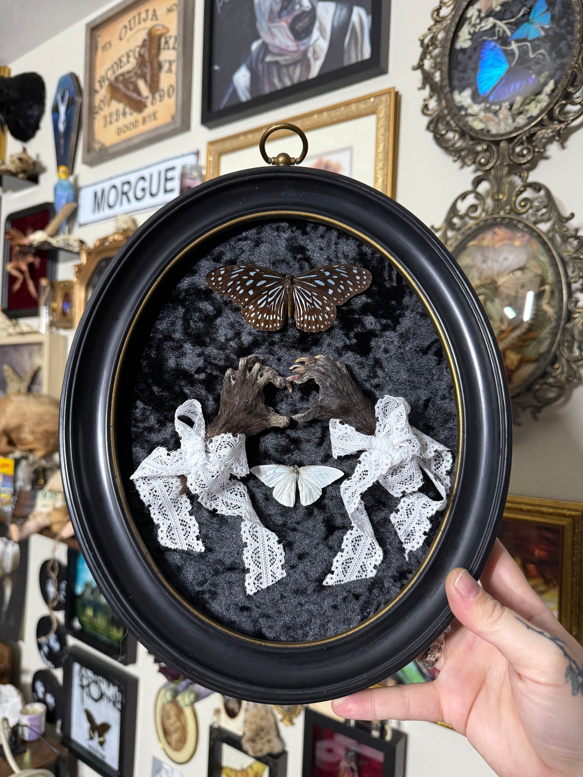 Mummified Opossum paws & butterfly.